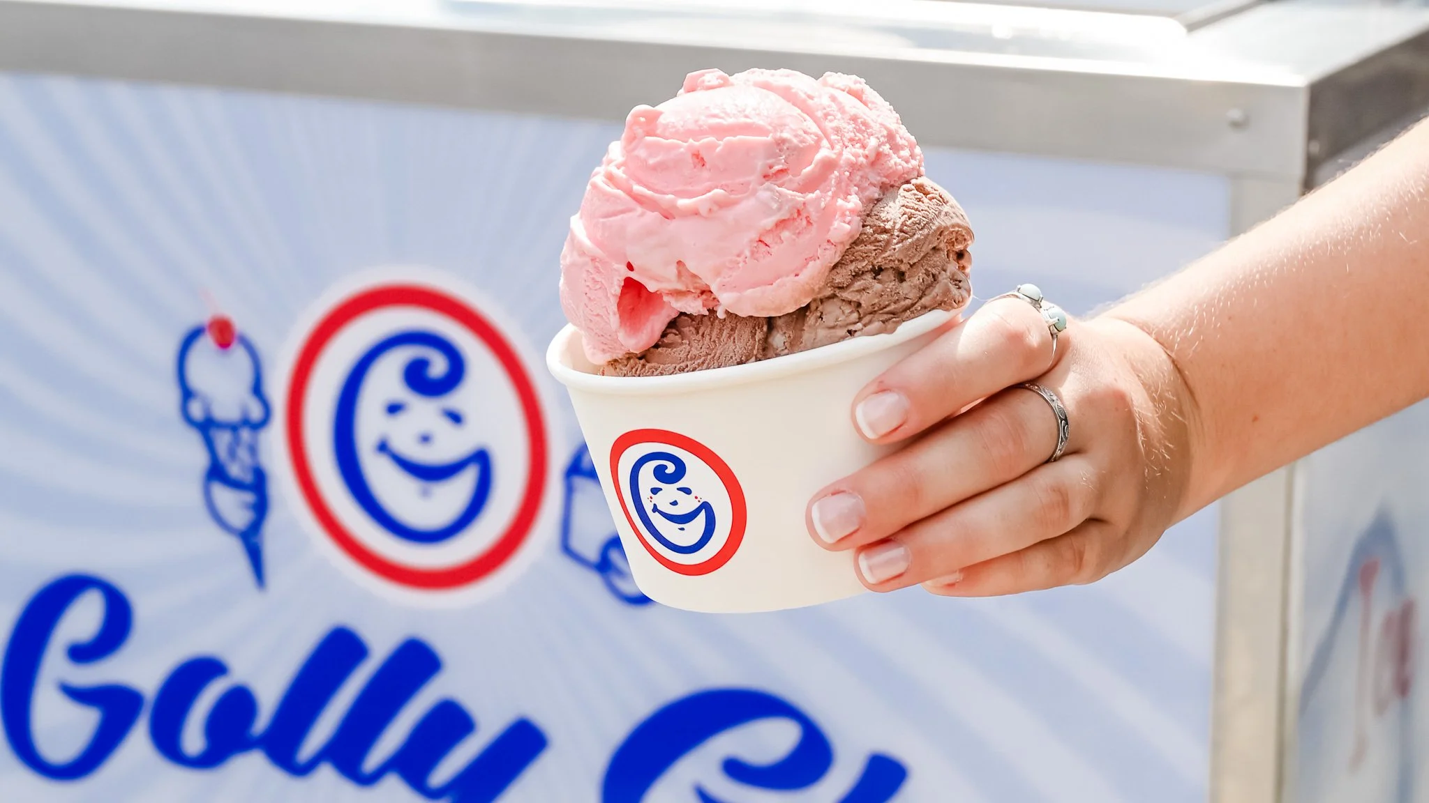 Our Mobile Scoop Case serves up to 8 delicious flavors—perfect for parties, corporate events, and celebrations. Choose cups or cake cones, and enjoy service from our friendly team for up to 2 hours. With setup, tear down, and travel included within 40 miles, we make it easy to treat your guests to hand-scooped happiness anywhere.